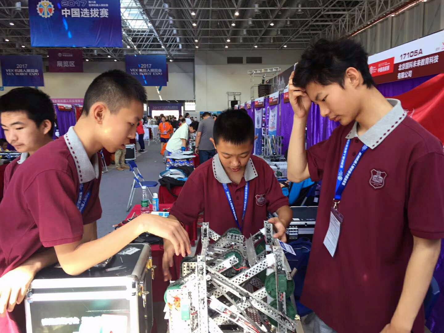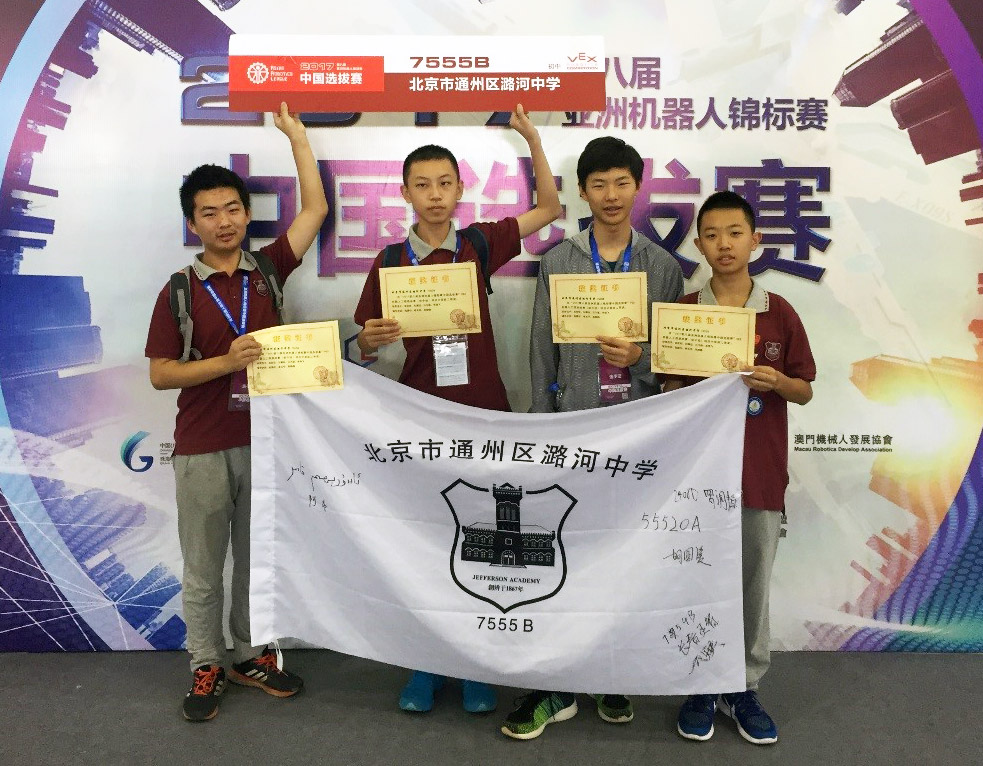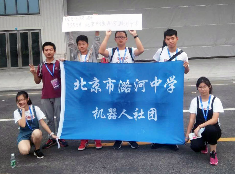 我校机器人科技社团队员,在赵腾任、崔长华、高静静老师的带领和辅导下,7月底开始这次比赛的准备,他们不怕酷暑、放弃了假期休息时间,利用放学后的时间,全身心投入到此项活动中。经过选拔,我校9名同学参加了VEX机器人工程挑战赛。备赛期间,他们充分利用各种时间,时有奋战到深夜,克服各种困难、解决各种矛盾,在赛上场发挥出了水平。