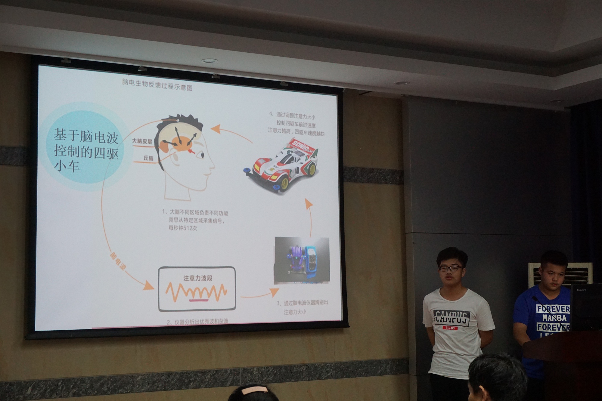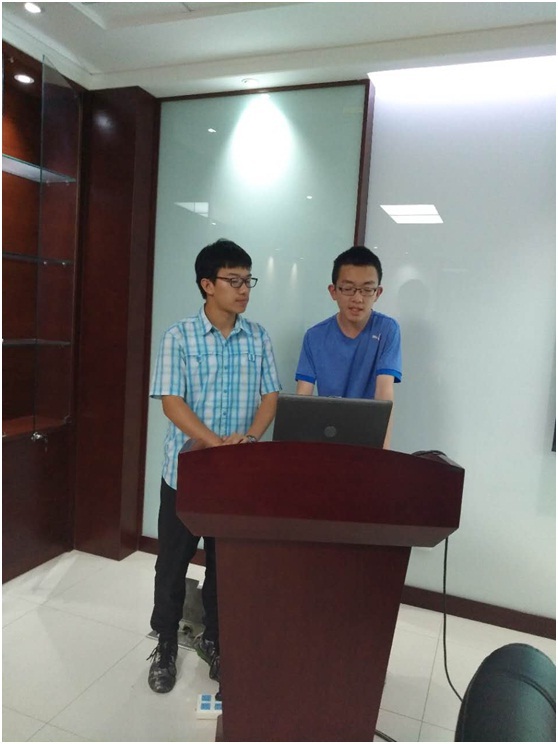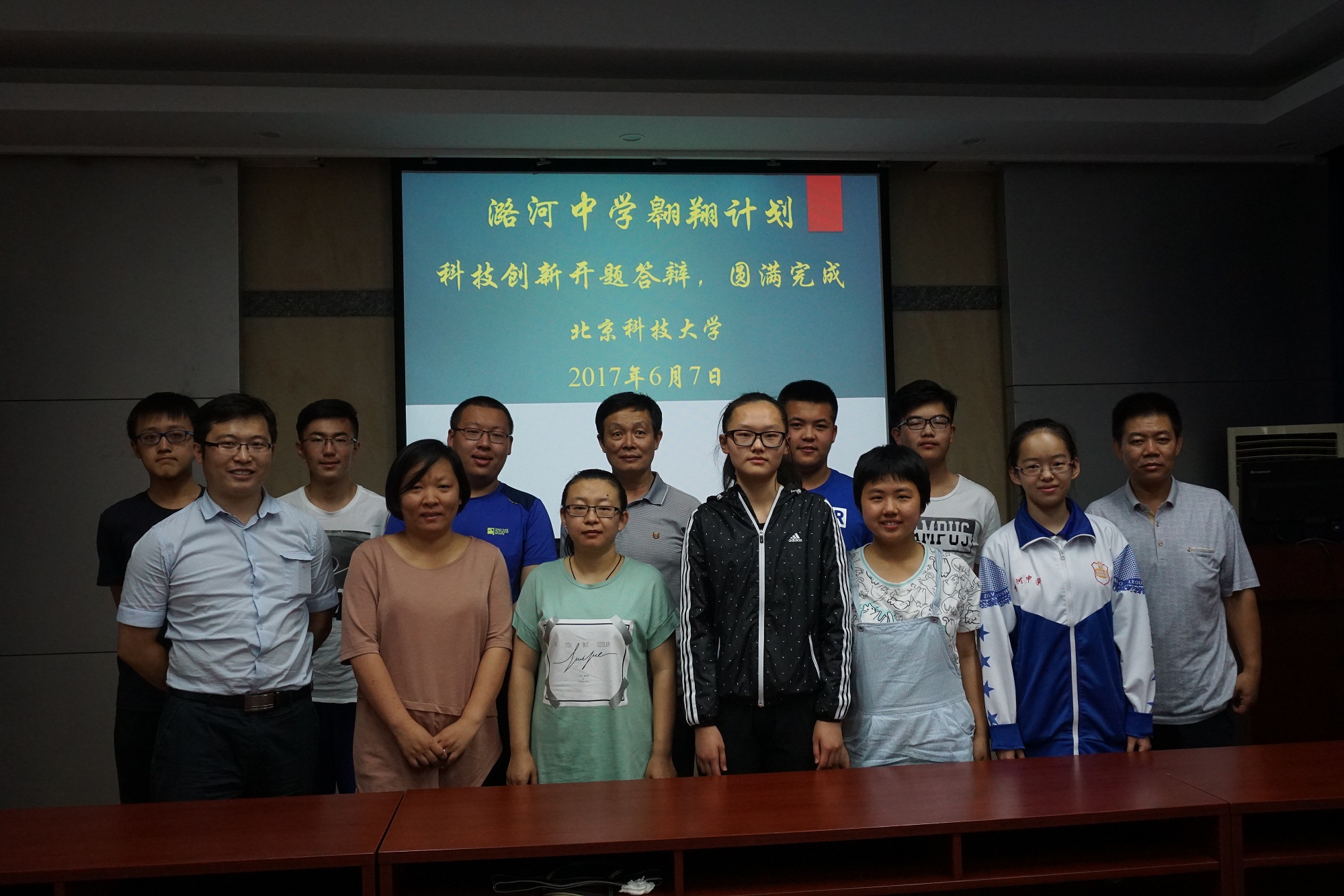 2017年6月8日上午,由北京科技大学和潞河中学联合培养的8名翱翔计划学员在北京科技大学理化楼402进行了开题活动。北京科技大学的陈章华教授、孙明明老师、王立锦老师、杨冰老师,我校刘亚茵老师参会。开题由北京科技大学陈章华教授主持。各位翱翔学员依次介绍自己的科研课题。潞河中学王承傲的课题是《四足关节机器人的搭建和研究》,潞河中学李纪千、李湘涵的课题是《沙漠应急取水取电装置》,顺义一中单思超、孙伟的课题是《基于脑电波控制的四驱小车》,永乐店中学郭涛的课题《磁悬浮电梯的研究及模型制作》,潞河中学刘宥宁、华尔默的课题《竖直动力下混合粒子的逆重力现象》。从开题报告答辩过程看每位同学都作了认真的准备,对自己的课题有深入的了解。陈章华教授、王立锦老师、孙明明老师对每位学员都做了点评。陈章华教授总结了此次开题答辩会,并对各位学员寄予厚望。