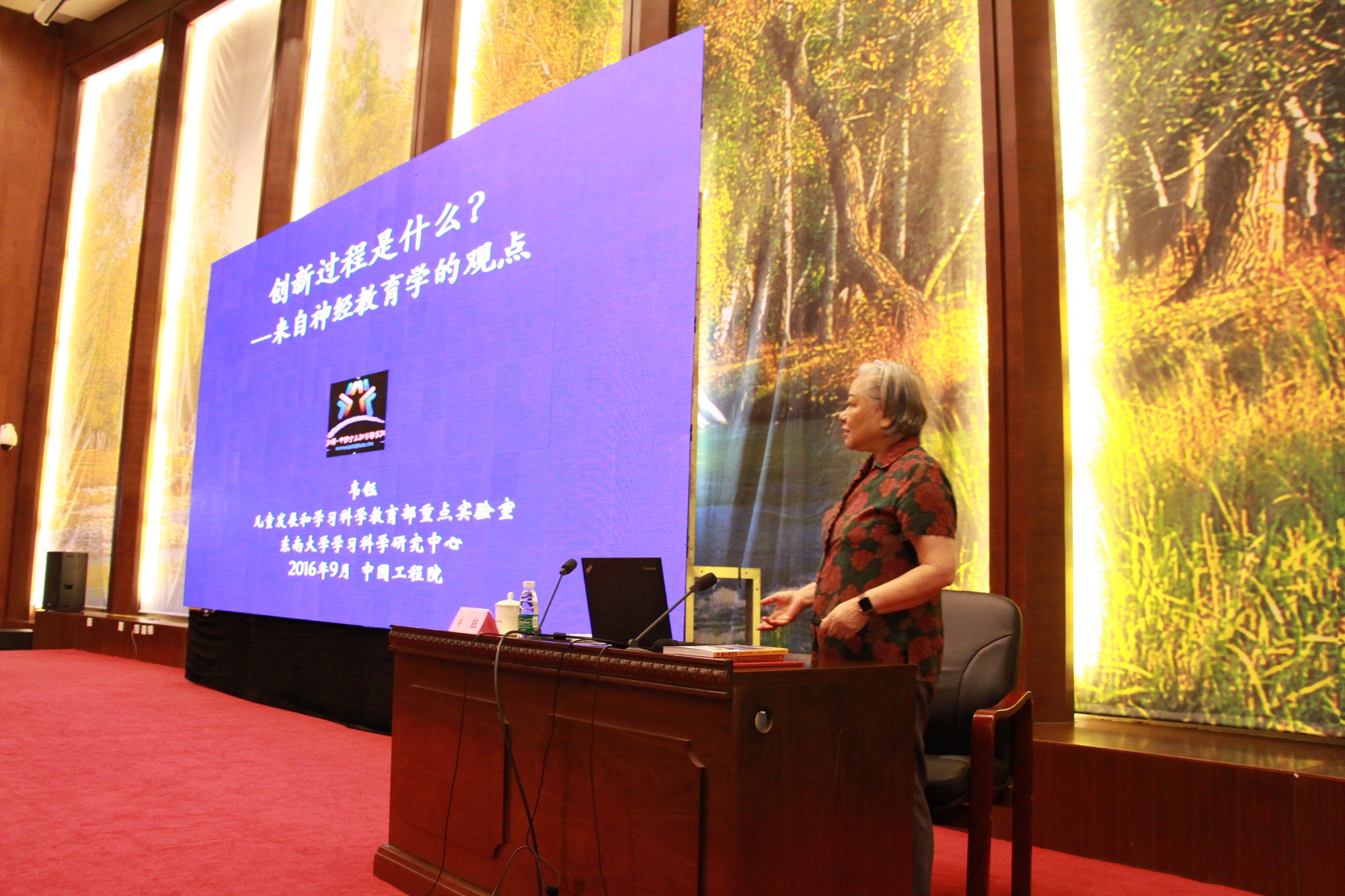韦钰院士以《创新过程是什么——来自神经教育学的观点》为题,向同学们介绍了产生于20世纪80年代的最新科学——神经教育学的基本知识,是基于实证科学研究之上的现代教育学;阐释了在神经教育学中创新、学习都是一门科学,它们的发展过程是通过实验可实证的,创新能力是可以培养的。韦钰院士向学生们强调科学研究的实证性、积累性,一再强调创新能力需要不断构建、积累,并且希望潞河的学生能够在神经教育学这个新领域能有所建树。我校学生和韦钰院士进行了深度的互动交流,并发表了参观感受。