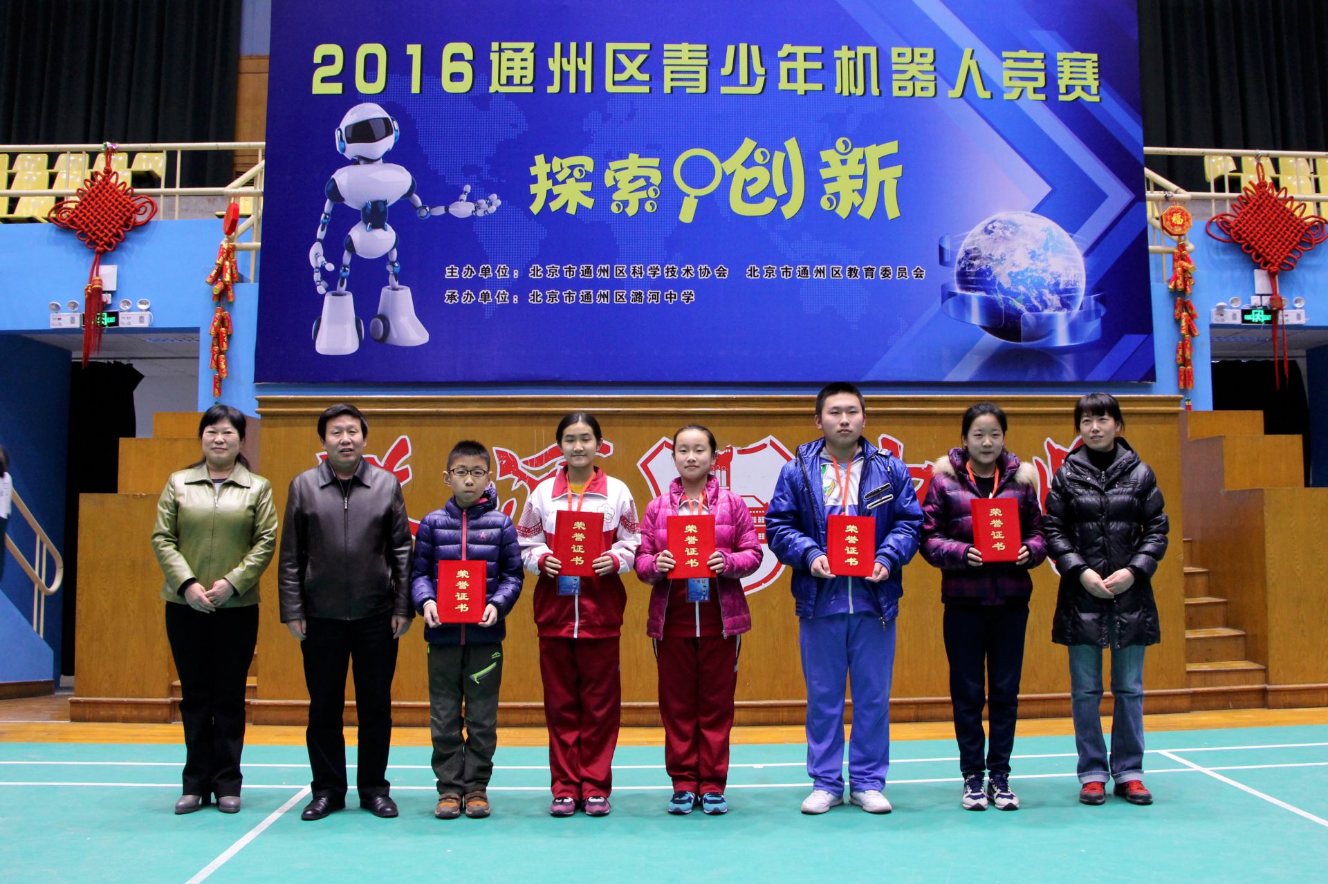 此次通州区青少年机器人竞赛共设VEX、综合技能、创意、足球、FLL、ASC六项比赛内容。经过赵腾任、崔长华、高静静、王丹老师辛苦辅导,我校于正达、唐子攀等初高中24名同学报名参加了所有项目的比赛。同学们克服困难、英勇拼搏,最终杨景超、张若凡、睢佳芮、候佳宜等12人获得VEX初中、高中组,初中创意,初中综合技能比赛项目第一名,他们将代表通州区参加第十六届北京青少年机器人竞赛。