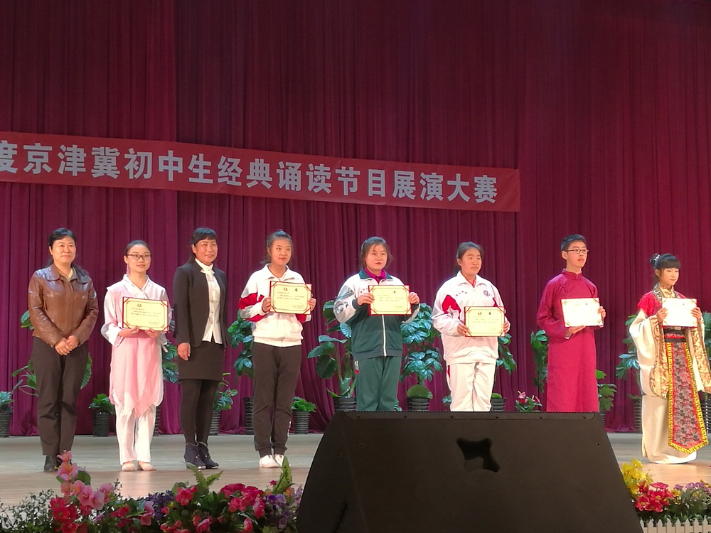 这次大赛是由北京市语言文化建设促进会和北京市通州区教师研修中心举办的,旨在促进中学生诵读经典,传承优秀传统文化,推动通州区经典国学教育的发展。在展演大赛结束后,首师大专家对我校节目高度评价:认为节目经过精心编排,孩子们对《诗经》中的《木瓜》和《天保》理解非常到位,用吟唱的形式准确地传达出了作品的内容和意蕴。