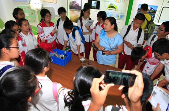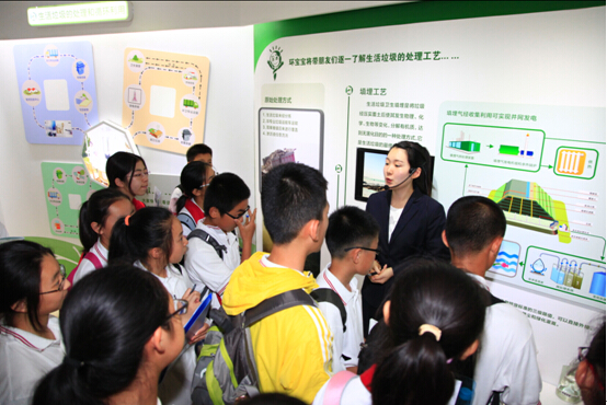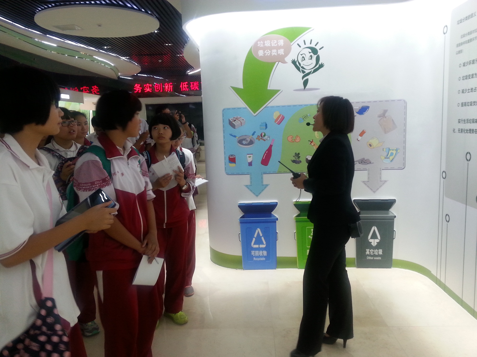 同学们一进入园区就被美丽的景色所吸引,这里鸟语花香、绿意盎然,丝毫没有身在垃圾处理厂的感觉,为什么会这样呢?带着疑问,同学们在园区讲解员的带领下,分两批深入科普展厅,垃圾填埋场、焚烧厂、餐厨厂,体验如何运用先进科学的手段处理垃圾,实现变废为宝。