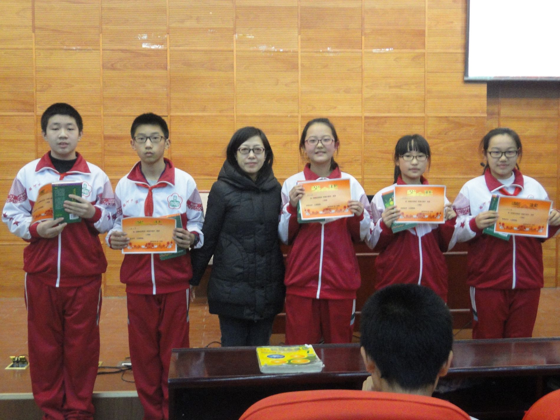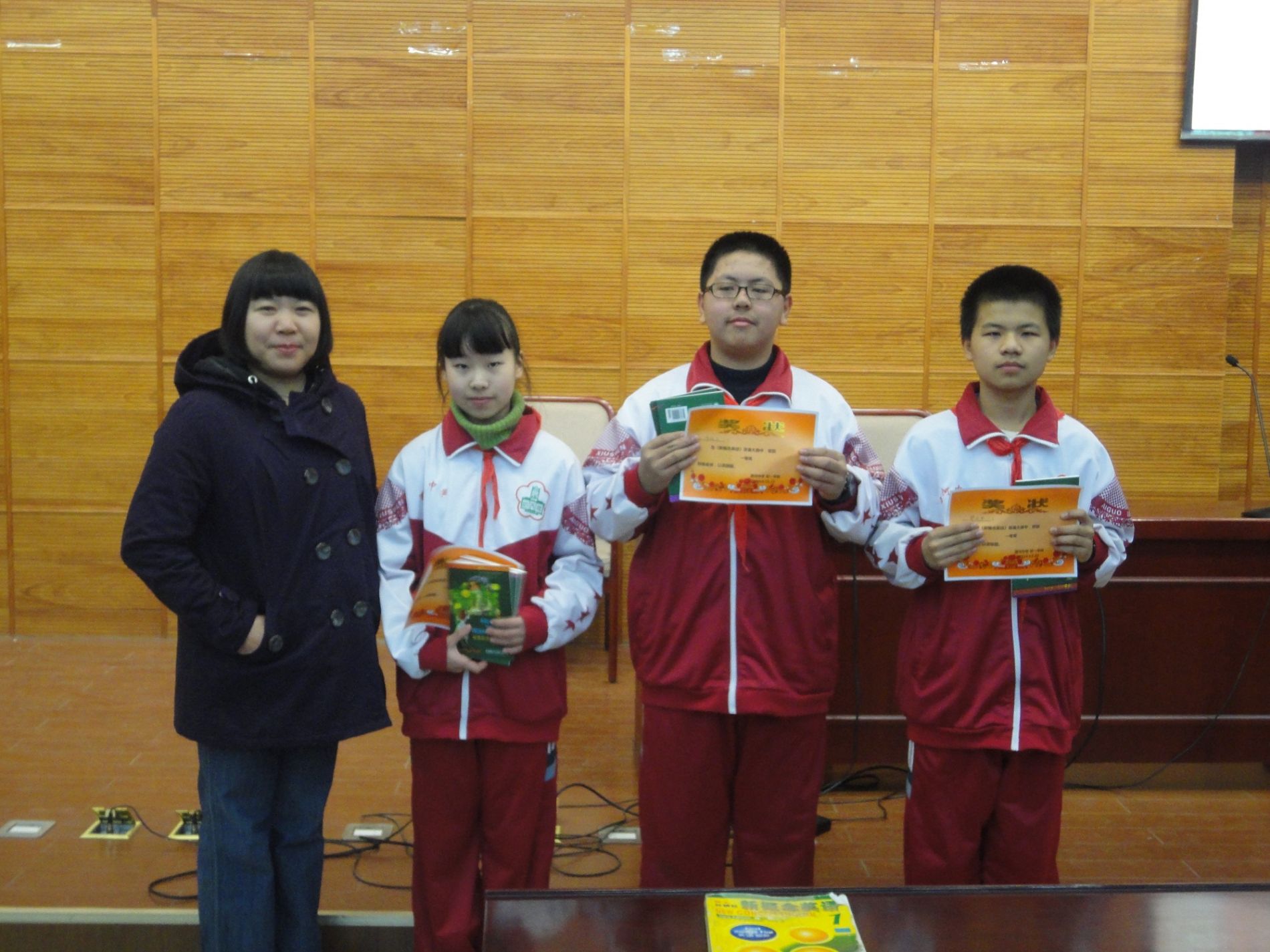 经过一番激烈的角逐之后,最终评出了一等奖3名,分别是初一( 3)班郭天宇,初一( 5 )班戈歆悦和初一( 1 )班齐羽飞,由李晨松、张丁丁老师颁奖;二等奖初一( 8 )班 邢睿怡等5名同学,由魏海楠、孙月芬老师颁奖;三等奖初一( 6 )班史松琦等8名同学,由姜小梅、 蒙桂荣老师颁奖。在颁完奖后, 张丁丁老师对比赛选手的表现进行了精彩的点评,对各班的小选手们赞许有加。