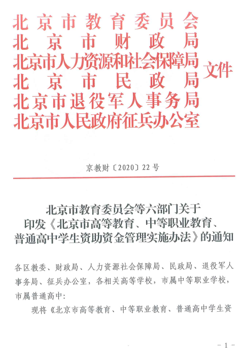 高中、职业学校-北京市教育委员会等六部门关于印发《北京市高等教育、中等职业教育、普通高中学生资助资金管理实施办法》的通知