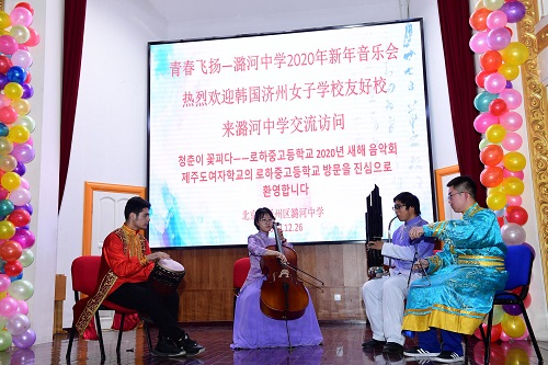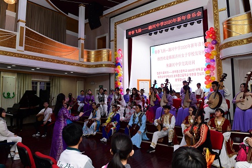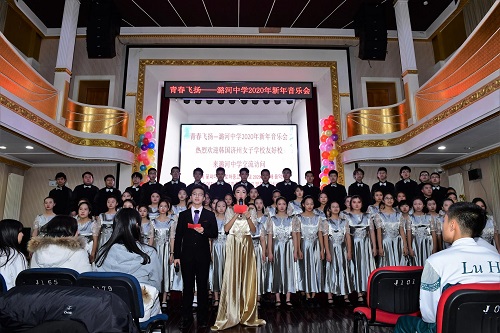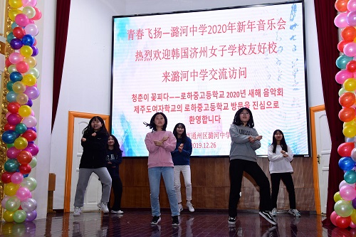 2019年12月26日,潞河中学“青春飞扬——2020新年音乐会”在潞河中学的金色大厅文氏楼唱响。新年音乐会是我校2019年科技艺术节中的一场专场音乐盛典演出。当天迎来了韩国济州女子学校的校长和老师到校交流,也一起观看并参与了新年音乐会的演出。