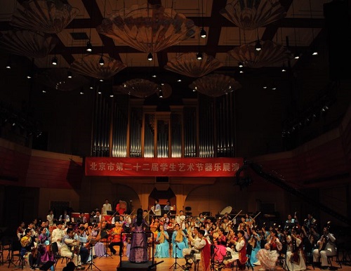 潞河中学韵之灵国乐团在荣获通州区第二十二届学生艺术节比赛一等奖之后,5月10日代表通州区参加了“北京市第二十二届学生艺术节”器乐展演。经过前期各区艺术节展演选拔,共51支民乐团参加全市展演。潞河中学国乐团经过角逐最后荣获金奖,参赛曲目《源》由本校乐团指挥谢丹老师创作;《英雄》由潞河中学民族团结艺术教育合作单位——新疆伊犁州歌舞剧院迪叶尔·艾克夫老师创作,弦乐声部指导姜恩天老师。潞河中学韵之灵国乐团是参赛组中唯一一支多民族乐团编制、合奏本校教师原创作品的乐团。