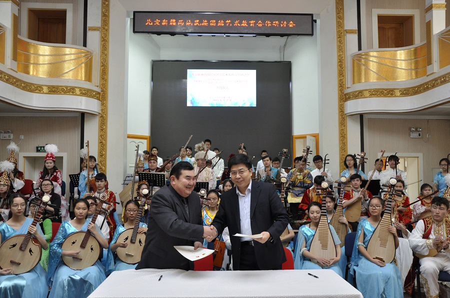 北京新疆两地民族团结艺术教育合作研讨会——暨潞河中学与伊犁州歌舞剧院、新疆生产建设兵团三中民族团结艺术教育合作签约仪式在潞河中学举行