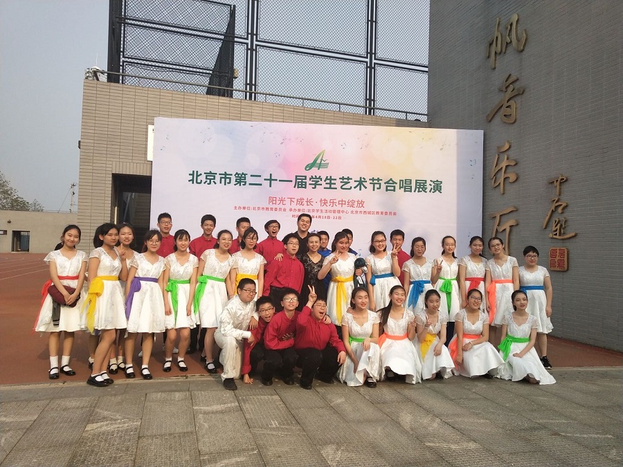 4月21日,高中合唱团在通州区艺术节比赛中以一等奖第一名的身份代表通州区,在孔令金老师和姜天博老师及部分学生家长的陪同下,高中合唱团同学们来到北京市35中参加北京市第二十一届中小学艺术节展演活动,合唱团同学们精神饱满,比赛时展现出了良好的演唱状态,唱出了我们的水平,同学们演唱了《northern light》、《大江东去》两首合唱曲目,也将大方的台风和满满的自信展示给了各位评委,每位参赛选手都精神抖擞,神采飞扬,他们用自己的歌声唱出了自己对音乐的理解和热爱。