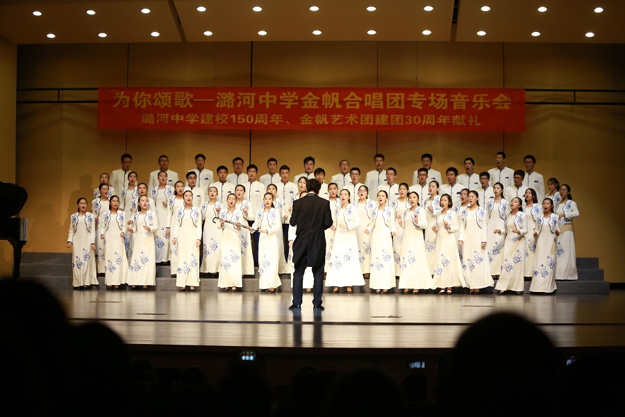 7月10日,“为你颂歌——潞河中学金帆合唱团专场音乐会”在通州区文化馆举行。潞河中学开展合唱艺术活动有着悠久的历史。潞河中学合唱团原名是Jefferson Academy Glee Club。据老校友回忆,中文名字实际是“白脖老鸪”合唱团,在整个华北地区很有影响。潞河中学合唱团风雨兼程,跨越了三个世纪,今天,依然活跃在潞河教育的舞台,书写学校史册的华彩乐章, 2011年11月被评为“北京市金帆合唱团”。2012年至今在现任指挥孔令金、姜天博老师的带领下获得了市区级艺术节比赛的一等奖、银奖。2017年5月,由维也纳童声合唱团艺术总监维尔特教授亲自授牌,我校成为维童之友俱乐部成员单位。