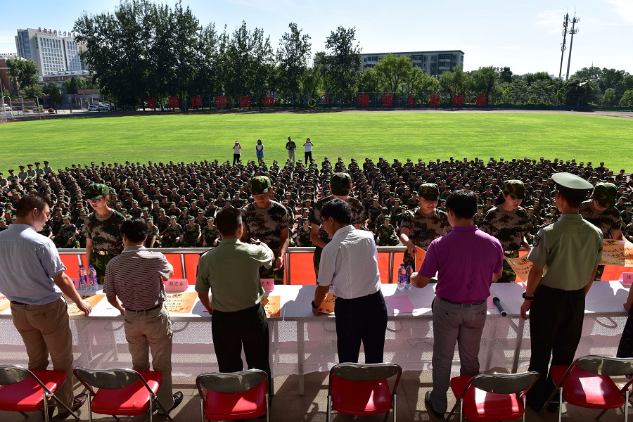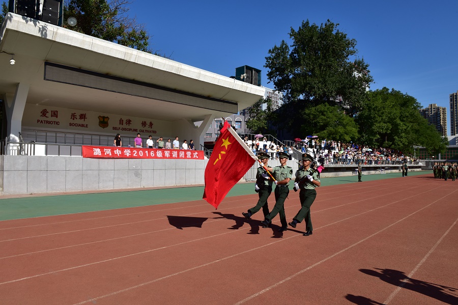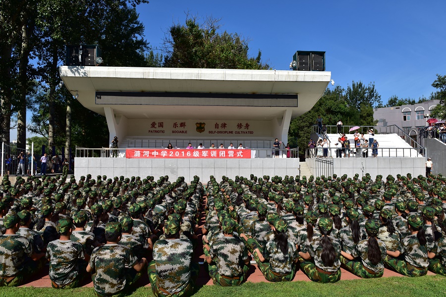 为培养学生良好的组织纪律性和吃苦耐劳的精神,增强学生的国防观念,对学生进行爱国主义教育,根据学校工作计划的安排,高一年级全体新生于2016年8月22日至8月29日、初一年级全体新生于2016年8月25日至29日,在潞河中学进行了军训活动。