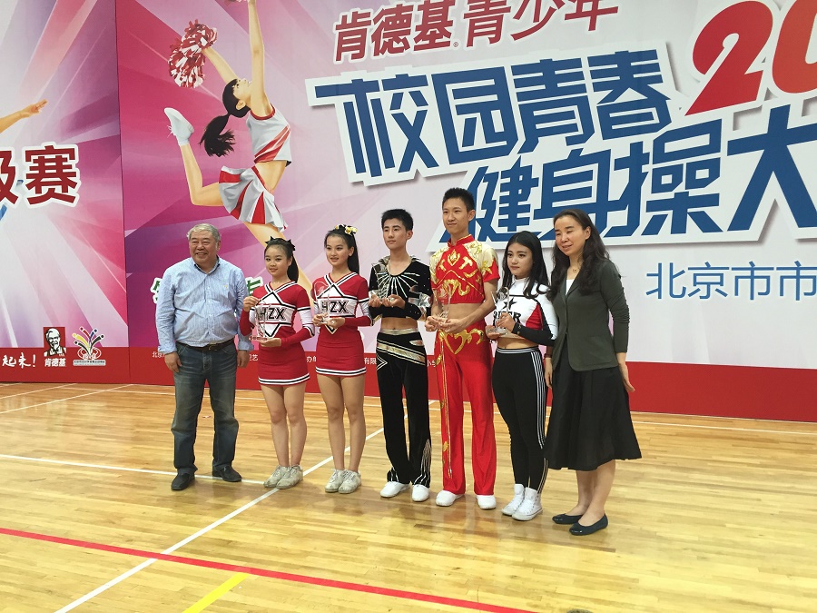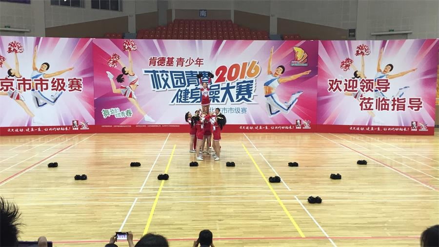 6月4日,“2016年北京市中学生肯德基系列校园青春健身操比赛”在北京地坛体育馆举行。潞河中学初中健美操队作为通州区比赛一等奖获奖队伍,在教练员吕哲老师的带领下参加了市级比赛。来自北京市的三十多支队伍参加了比赛,经过激烈角逐,我校初中健美操队获得了啦啦队基础套路—《神采飞扬》和创编套路的两个特等奖好成绩。