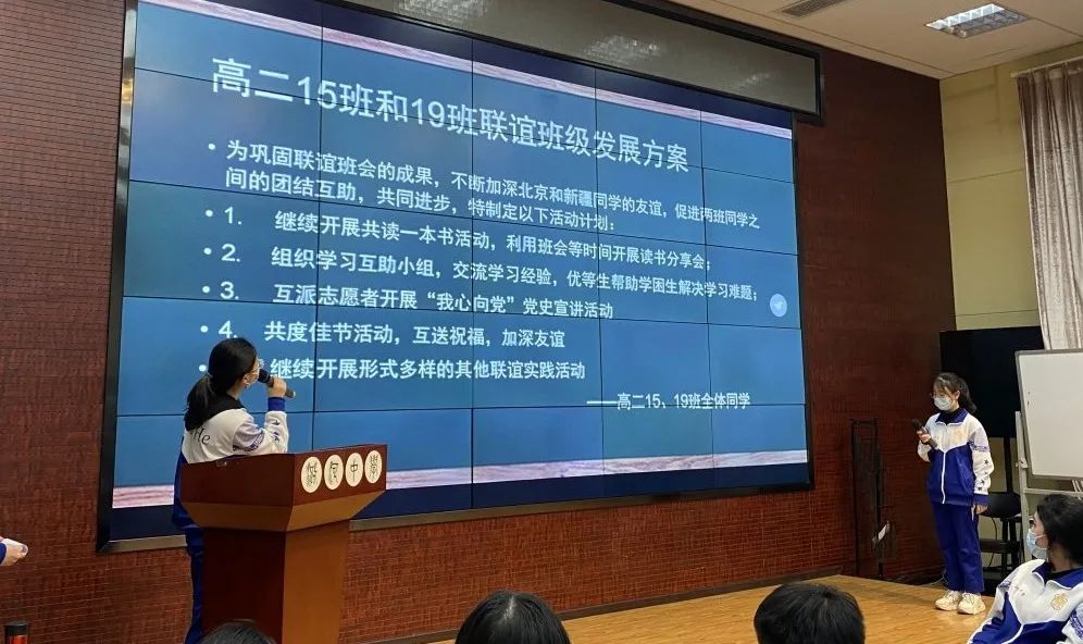 2020年12月7日,15班17班率先开展了以“相遇潞园,携手同行”为主题的联谊班会,两班的同学们在此班会中积极参与,丰富的活动内容与形式使学生互相了解了彼此。北京同学欣赏到了新疆舞蹈的欢快多姿,新疆同学也品尝到了北京豆汁的酸中带甜。北京深厚的文化底蕴和新疆的美丽富饶给大家留下了深刻的印象。