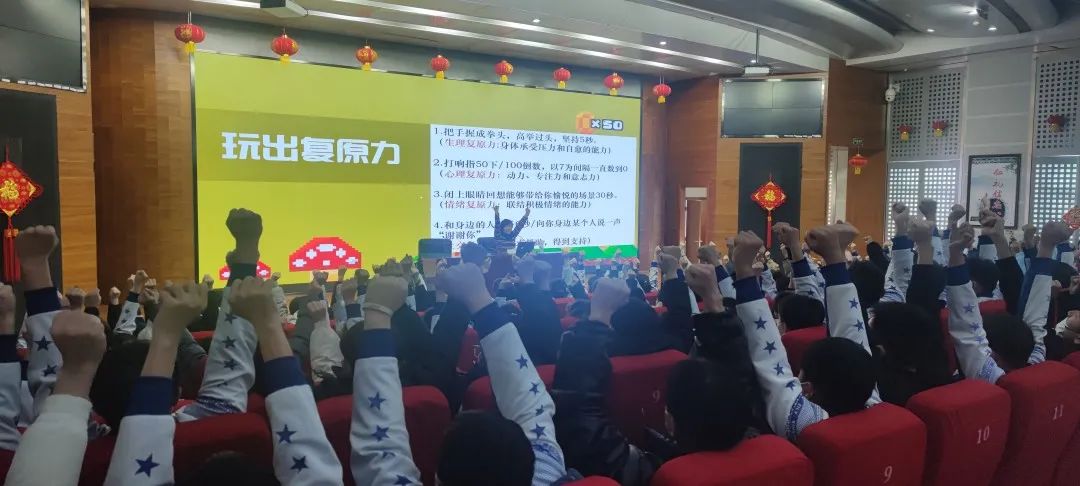刘老师带领同学们通过闭眼冥想、“玩”出复原力、制作“游戏手册”等环节,教会同学们如何调动积极心理情绪,科学减压,积极乐观的面对学生和生活中的困难。