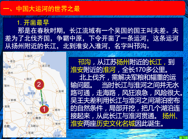 在贾老师的带领下,我们从历史、地理等多角度领略了大运河的古往今来,诗情画意。京杭大运河是世界上最早开凿的,最长的运河,大运河带动了经济的发展,文化的交融,大运河带给我们的价值是无价的。