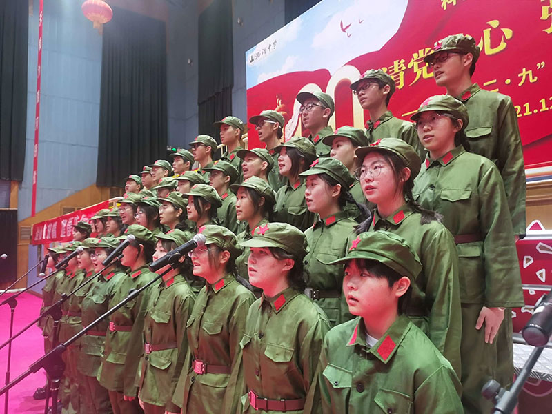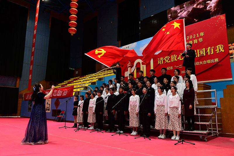 重温百年奋斗的恢弘史诗,以信仰之光照亮前行之路,用如磐初心凝聚奋斗伟力,才能接续谱写新的历史篇章。此次大合唱比赛分“开天辟地”、“改天换地”、“翻天覆地”、“惊天动地”四个篇章进行。一方面带领师生用歌声回顾中国共产党百年奋斗的峥嵘岁月,另一方面通过演唱展现新时代成就、新青年风貌的歌曲,引导青年勇敢做时代精神的倡导者、践行者。