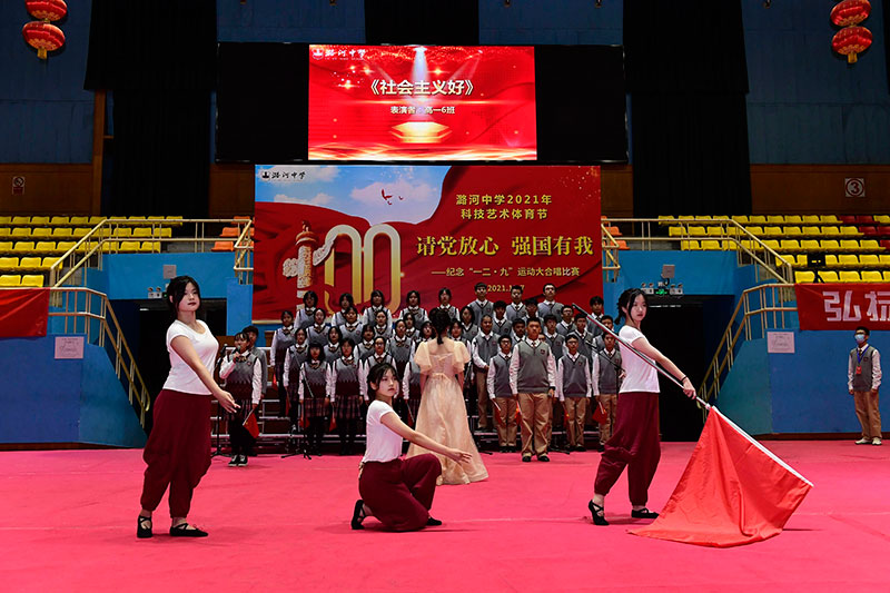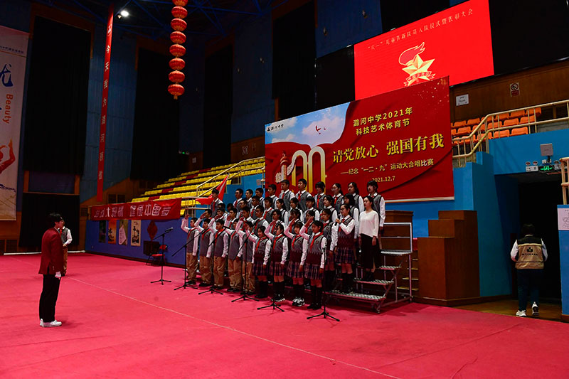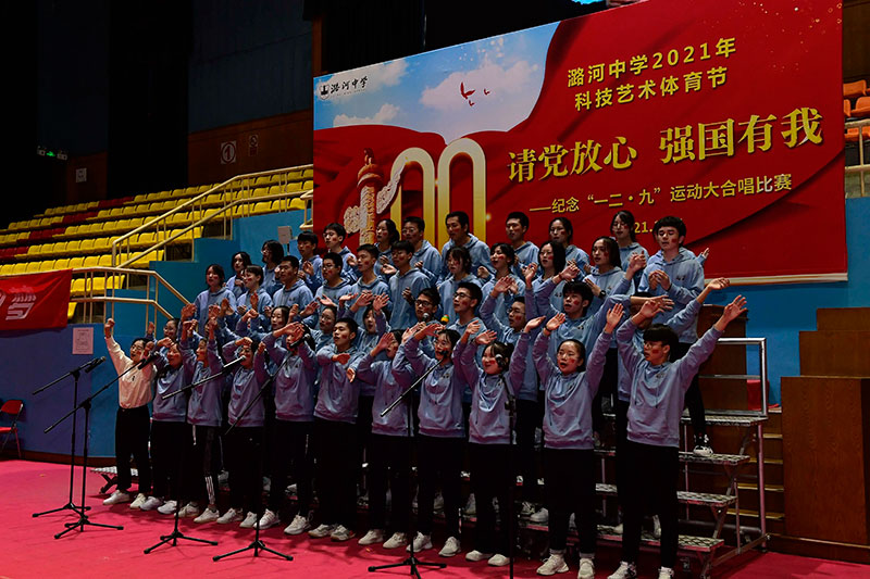 为纪念“一二·九”学生爱国运动,继承和发扬革命传统,引导学生在百年党史中汲取奋进的力量,潞河中学学生处、团委组织了2021年校园科技艺术体育节 “请党放心,强国有我”纪念一二·九运动大合唱比赛。
