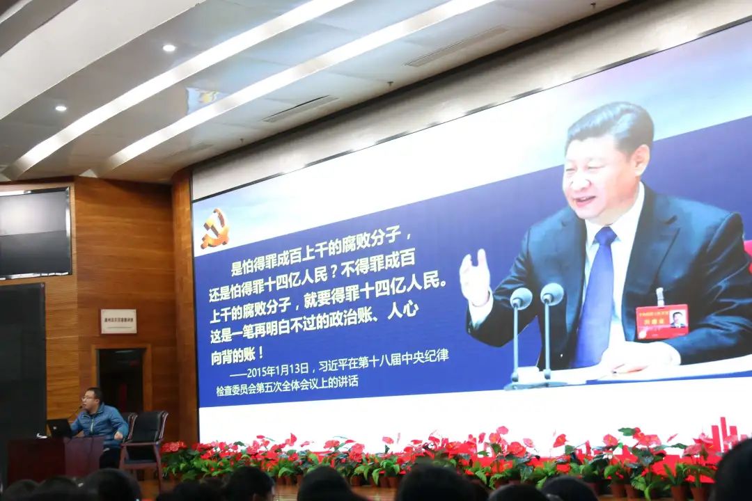 在第二部分中,王老师重点谈我们党坚持同贪污腐败作斗争。他以周永康、徐才厚等案例说明,党坚持“老虎苍蝇一起打”,重拳出击惩治腐败。不管职位有多高,权力有多大,反腐无禁区。他讲到,中国共产党是世界上最大的政党,党带领人民不仅能够进行伟大的社会革命,也能进行伟大的自我革命。中国共产党的伟大在于敢于“刀刃向内”,坚持全面从严治党,坚定不移推进党风廉政建设和反腐败斗争。