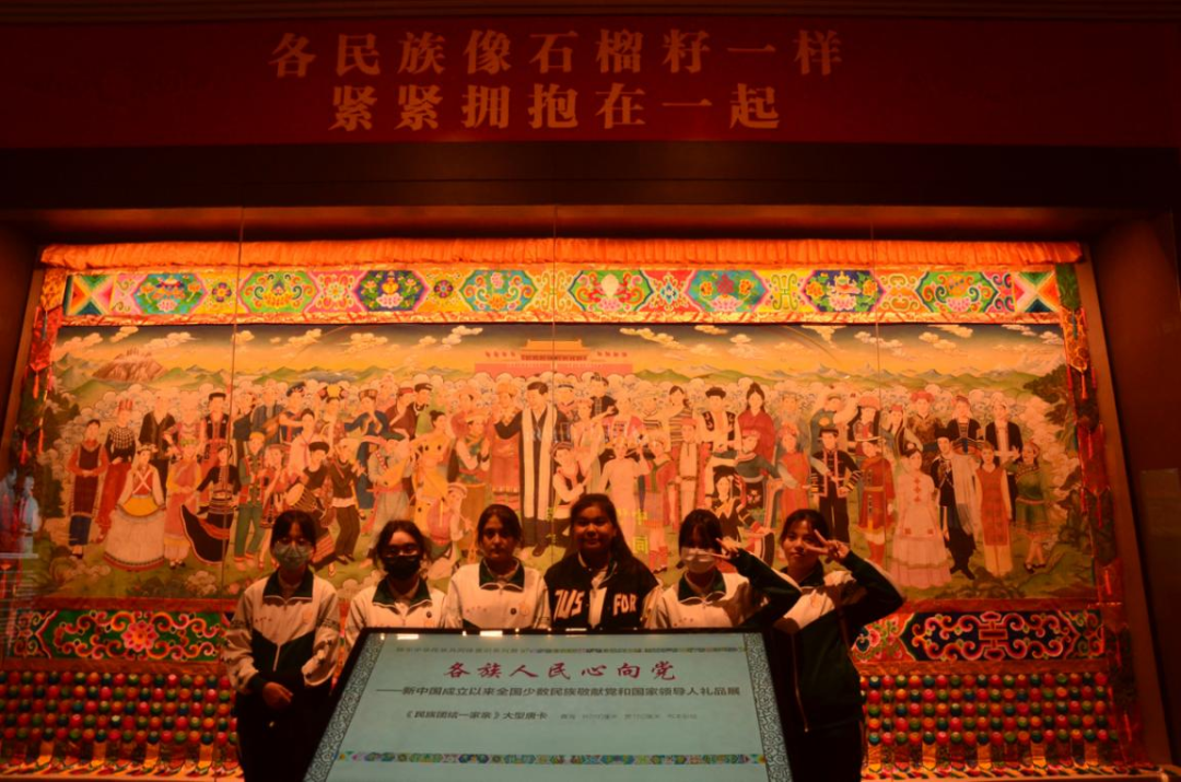 为进一步强化潞河中学内高班学生中华民族共同体意识,10月5日上午,在内高班李敏主任、徐剑、古丽波斯坦、郭卫华老师的带领下,内高班学生前往民族文化宫,参观“全国兴边富民成就展”的“民族瑰宝——民族文化宫馆藏文物精品展”和“新中国成立初期全国少数民族敬献中央人民政府礼品展”。