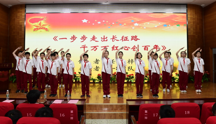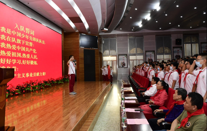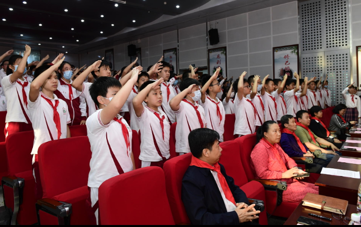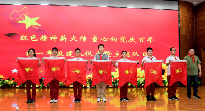 红领巾,是队员们胸前最活泼亮丽的色彩;少先队,是队员们最温馨的精神家园和健康成长的摇篮。星星火炬的旗帜,是燃烧的爱国心,是奔涌的报国情。建队仪式前,全场师生通过观看视频回顾了少先队的光辉历史。