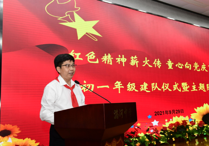 李晨松副校长老师宣读了《关于在初一年级成立少先队并聘请辅导员的决定》。