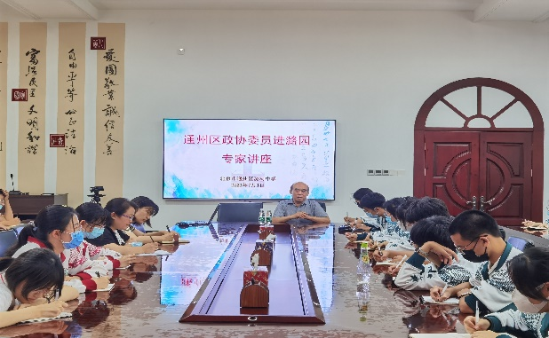 7月1日,在中国共产党百岁生日到来之际,潞河中学模拟政协社团师生特邀区政协常委庞玉、共青团界刘晓蕾、教育界蒋真铮三位委员走进校园指导模拟提案实践活动,以实际行动向建党百年献礼。
