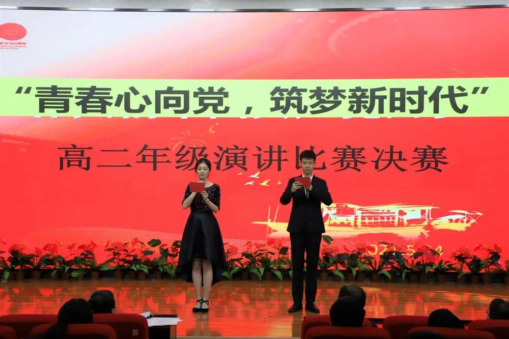 为纪念中国共产党建党100周年,激励潞河学子传承红色基因,发扬党的优良传统,厚植爱党、爱国、爱社会主义的情感,我校高二年级举办了“青春心向党,筑梦新时代”演讲比赛。经过前期二十个班的激烈角逐,10名选手脱颖而出,参加了5月24日在第一报告厅举办的决赛。谢宏春副校长、学生处马剑涛主任、团委徐甲书记、语文教研室主任贾一震老师和政治教研室主任田娜老师受邀参加并担任大赛评委。