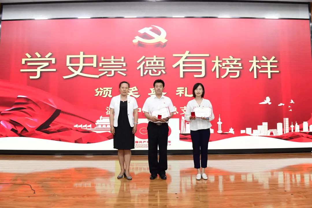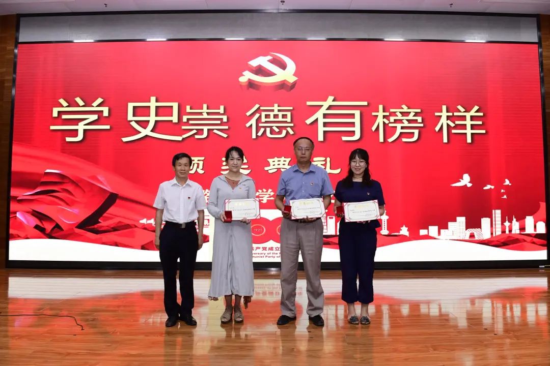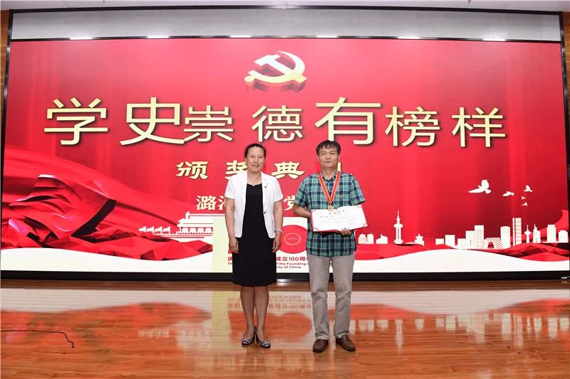 在学史崇德有榜样(颁奖典礼)板块中,党总支委员刘晓蕾宣读《关于表彰潞河中学党总支2021年优秀共产党员、优秀党务工作者的决定》,并由党总支委员祁京生、郭连弟、谢宏春、李晨松分别为获奖党员颁奖。