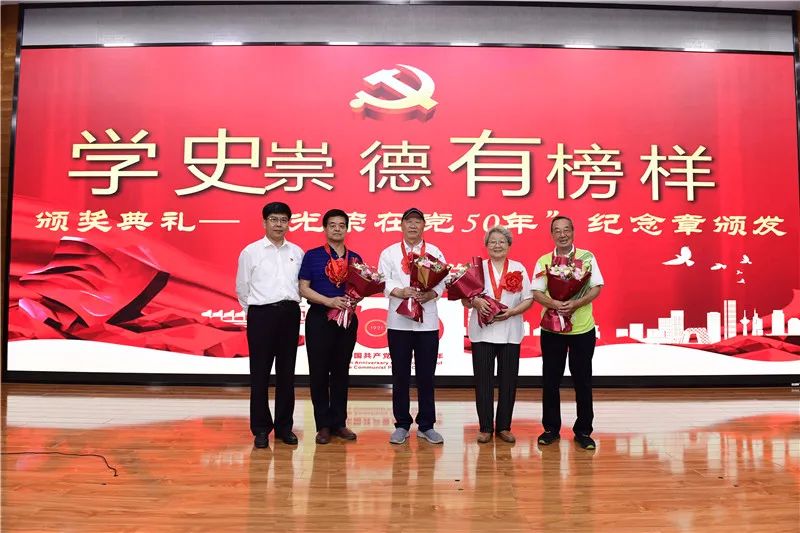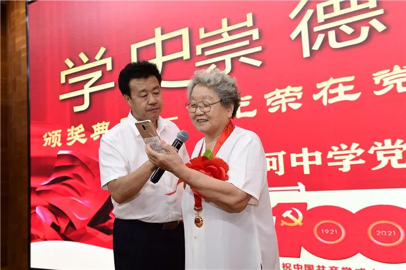 孟洪峰副书记为大家介绍了潞河中学“光荣在党50年”的老党员的基本情况,并由徐华书记为老党员们颁发纪念章(部分年龄较大行动不便的老党员由孟洪峰副书记提前在家属区党员活动室颁发)。